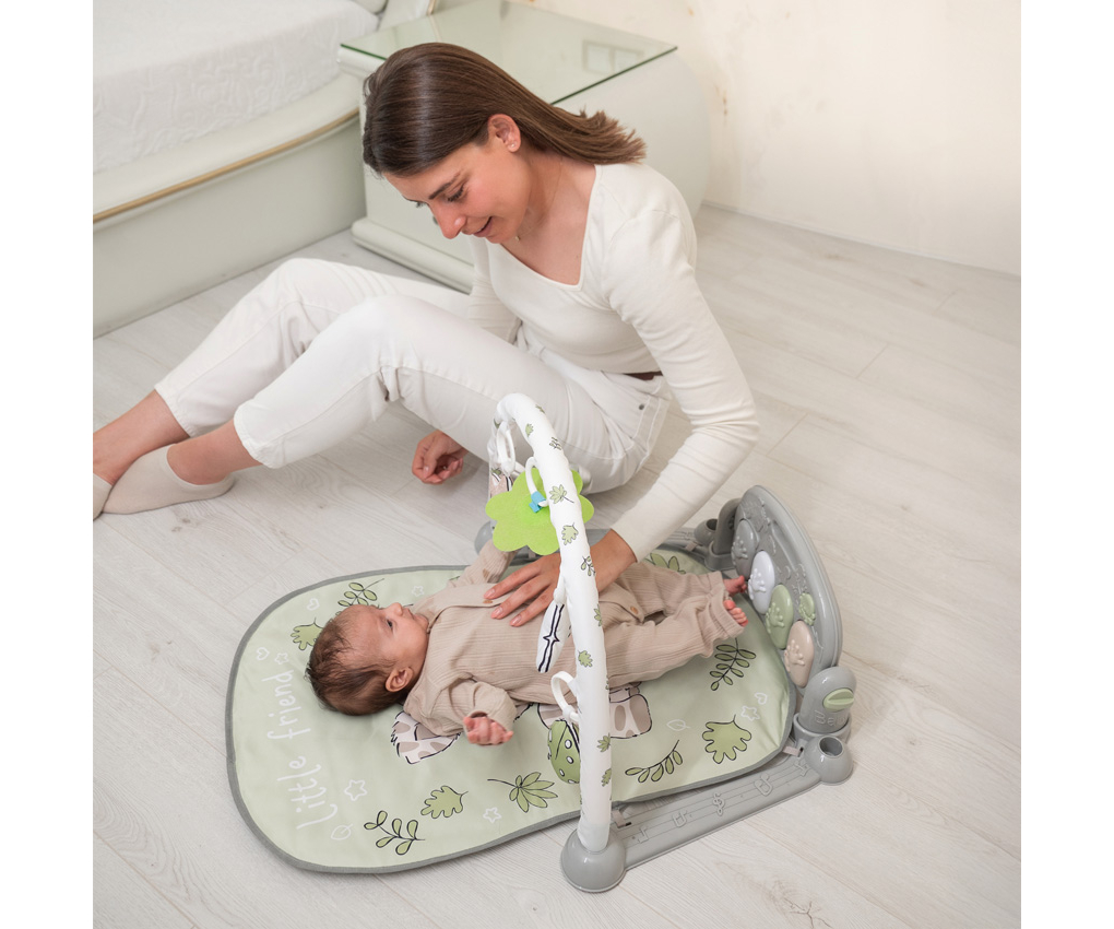 Μπορεί να χρησιμοποιηθεί σε διαφορετικά στάδια ανάπτυξης, καθώς είναι κατάλληλο για παιχνίδι ξαπλωμένο ανάσκελα, παιχνίδι μπρούμυτα αλλά και παιχνίδι σε καθιστή θέση. Το ενσωματωμένο μουσικό πιανάκι ενεργοποιείται με το πάτημα των πλήκτρων και βοηθά το παιδί να ανακαλύπτει ήχους και αντιδράσεις, ενώ μπορεί να χρησιμοποιηθεί και ανεξάρτητα.