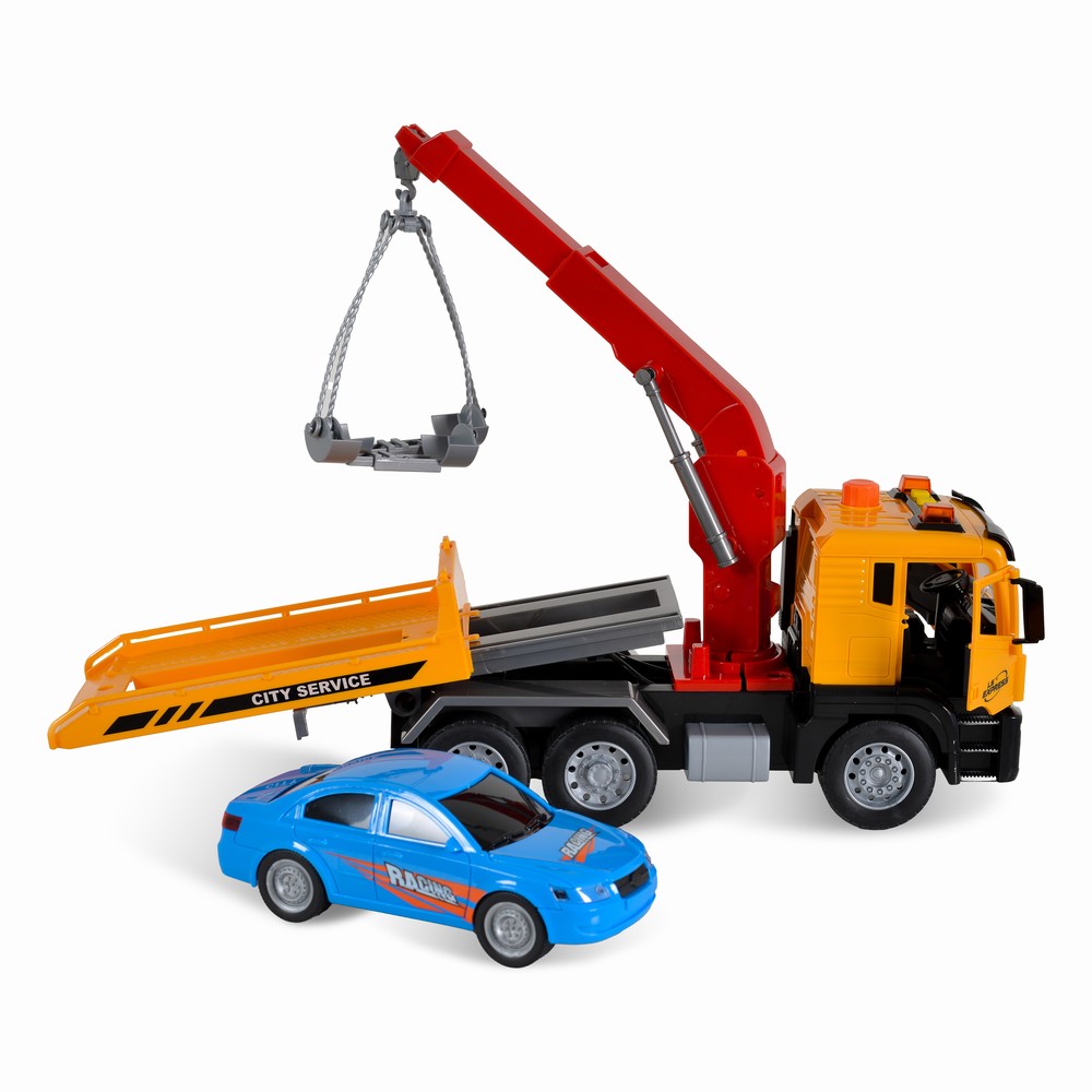 Ρεαλιστικό φορτηγό οδικής βοήθειας WENYI 1:10 με μικρό αυτοκίνητο, ρυθμιζόμενη πλατφόρμα, γερανό ανύψωσης, φώτα & ήχους. Ιδανικό για παιχνίδι ρόλων και δεξιοτήτων. Κατάλληλο από 3+ ετών.