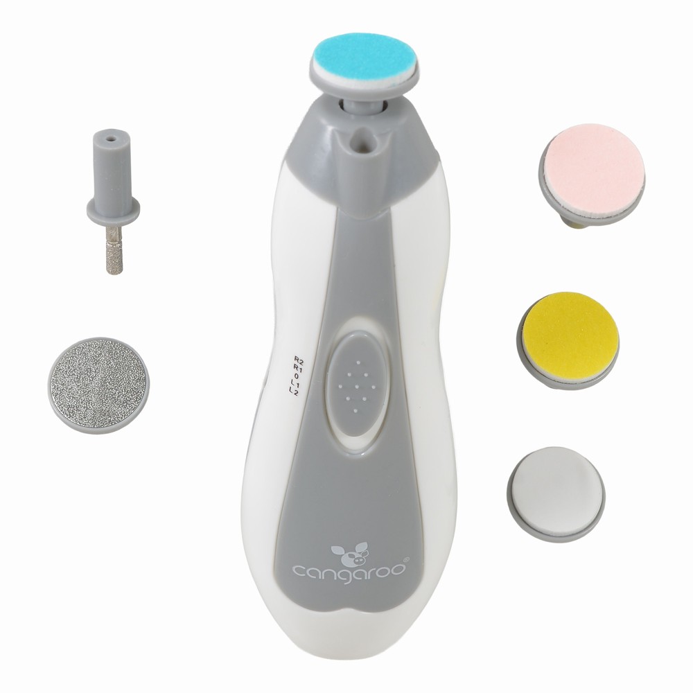 Ηλεκτρική λίμα νυχιών Cangaroo Nailina για μωρά, παιδιά και ενήλικες, με φωτάκι για μεγαλύτερη ακρίβεια. Διαθέτει 4 λειτουργίες, κεφαλή 360° και 6 ανταλλακτικές κεφαλές για ασφαλές λιμάρισμα και γυάλισμα χωρίς κίνδυνο τραυματισμού.