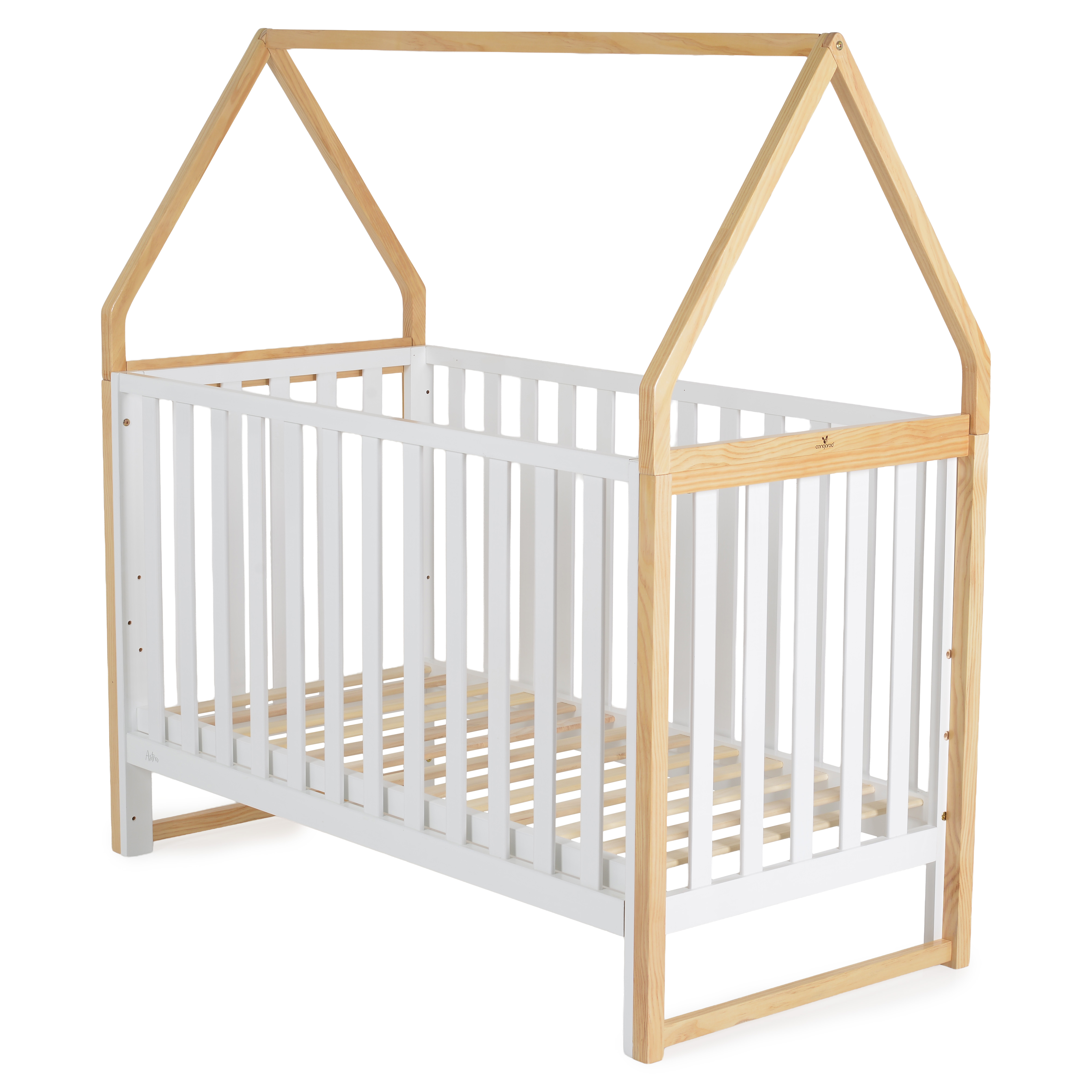 Ξύλινη βρεφική κούνια Cangaroo Astra από μασίφ ξύλο πεύκου, με μοντέρνο σχέδιο “σπιτάκι” και 3 επίπεδα ρύθμισης ύψους στρώματος. Με στρογγυλεμένες άκρες, ασφαλείς αποστάσεις στα κάγκελα και καλή κυκλοφορία αέρα για άνετο και ήρεμο ύπνο.
