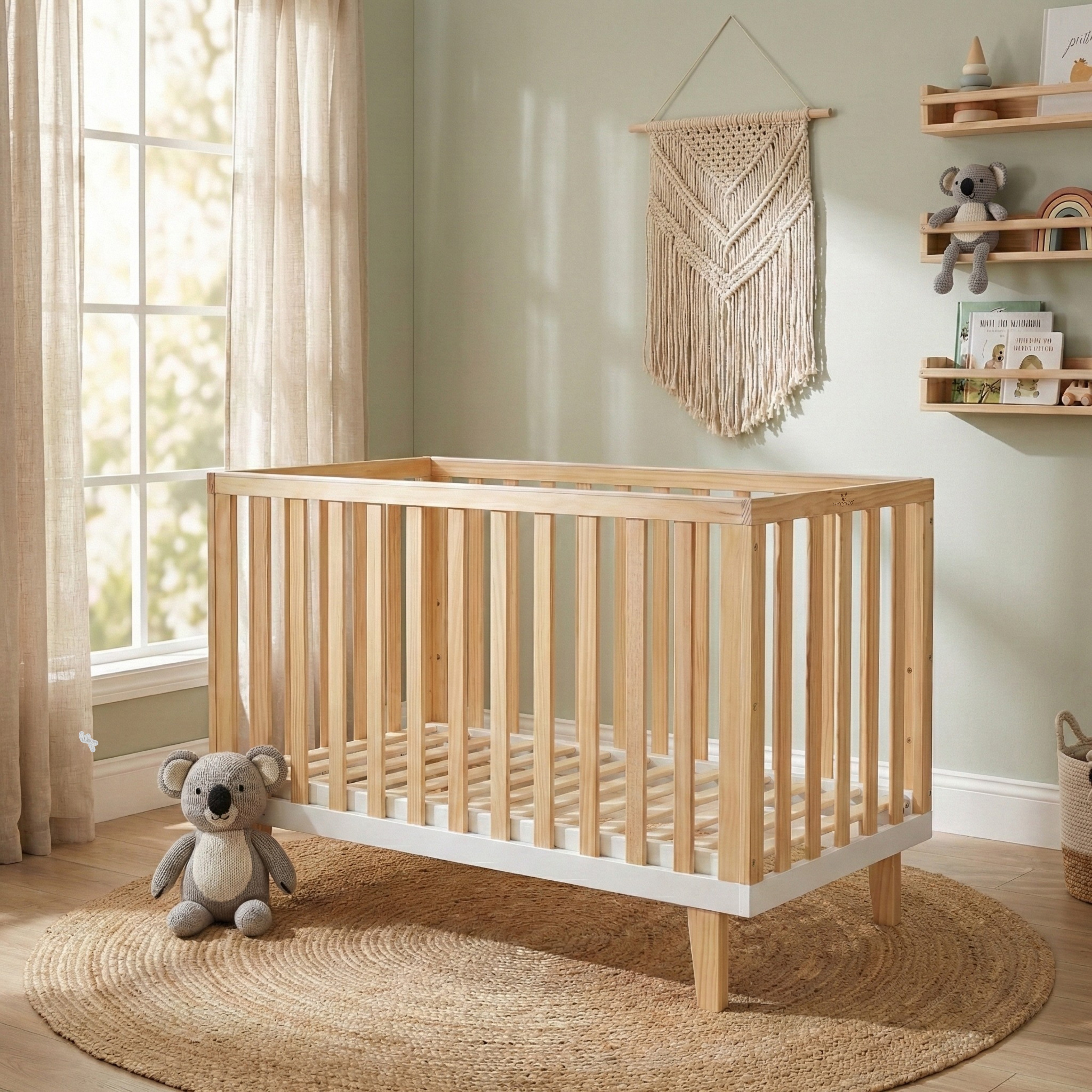 Η βρεφική κούνια Cangaroo Whisper είναι μια σταθερή και πρακτική επιλογή που δημιουργεί ένα ασφαλές περιβάλλον ύπνου από τις πρώτες ημέρες του μωρού. Κατασκευασμένη από μασίφ ξύλο πεύκου, συνδυάζει αντοχή, λειτουργικότητα και απλό, elegant design που ταιριάζει εύκολα σε κάθε παιδικό δωμάτιο.