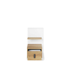 Κομψό κομοδίνο με πρωτότυπο και μοντέρνο σχήμα. Το ευρύχωρο συρτάρι του επιτρέπει την εύκολη πρόσβαση στα αντικείμενα που τοποθετούνται μέσα. Το επάνω μέρος του συρταριού και ένα μικρό ράφι σάς επιτρέπουν να βάζετε άνετα αντικείμενα που χρειάζεστε - το τηλέφωνο, το ξυπνητήρι ή την κρέμα χεριών σας.