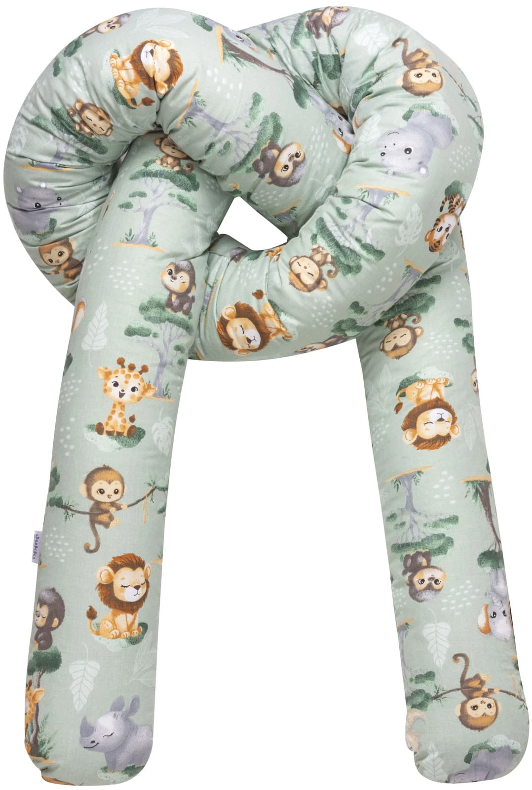 Η κυλινδρική πάντα κούνιας JUKKI μήκους 300 cm σε σχέδιο Tropical Animals είναι ιδιαίτερα χρήσιμη όταν το μωρό αρχίζει να γυρίζει και να κινείται περισσότερο κατά τη διάρκεια της νύχτας. Δημιουργεί ένα μαλακό προστατευτικό “φράγμα” στο κρεβατάκι, ώστε να μειώνονται τα χτυπήματα και να αποφεύγεται η πίεση χεριών/ποδιών ανάμεσα στα κάγκελα.