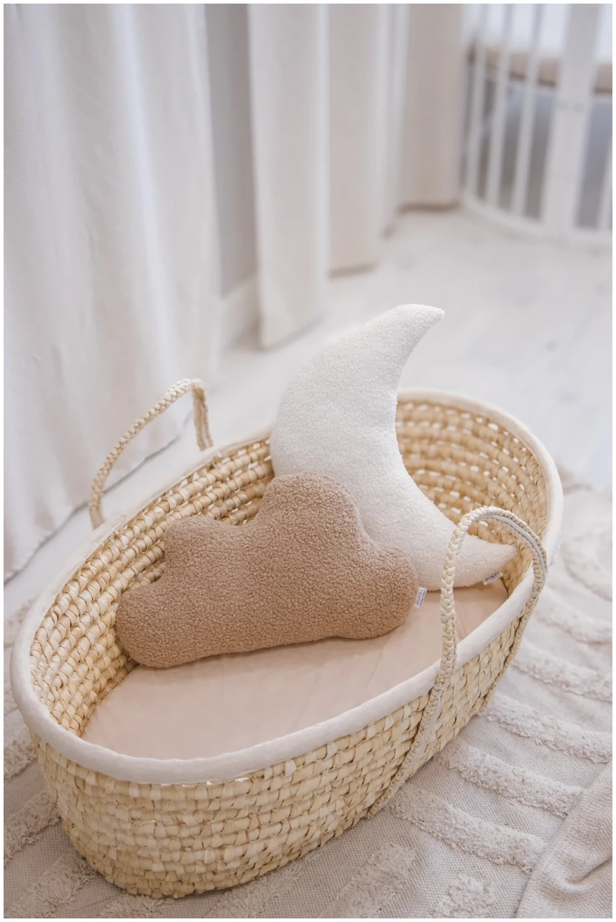 Δημιουργήστε μια ήρεμη, ζεστή ατμόσφαιρα στο παιδικό δωμάτιο με το JUKKI Μαξιλάρι Φεγγάρι Μπουκλέ σε εκρού. Το πλεκτό ύφασμα μπουκλέ είναι κορυφαίας ποιότητας, απαλό και απίστευτα ευχάριστο στην αφή, ενώ η αντιαλλεργική γέμιση από πούπουλο σιλικόνης προσφέρει ελαστικότητα και άνεση. Ιδανικό για διακόσμηση, cozy γωνιές και ταιριαστούς συνδυασμούς με φωλιές, κουβέρτες και αξεσουάρ JUKKI.