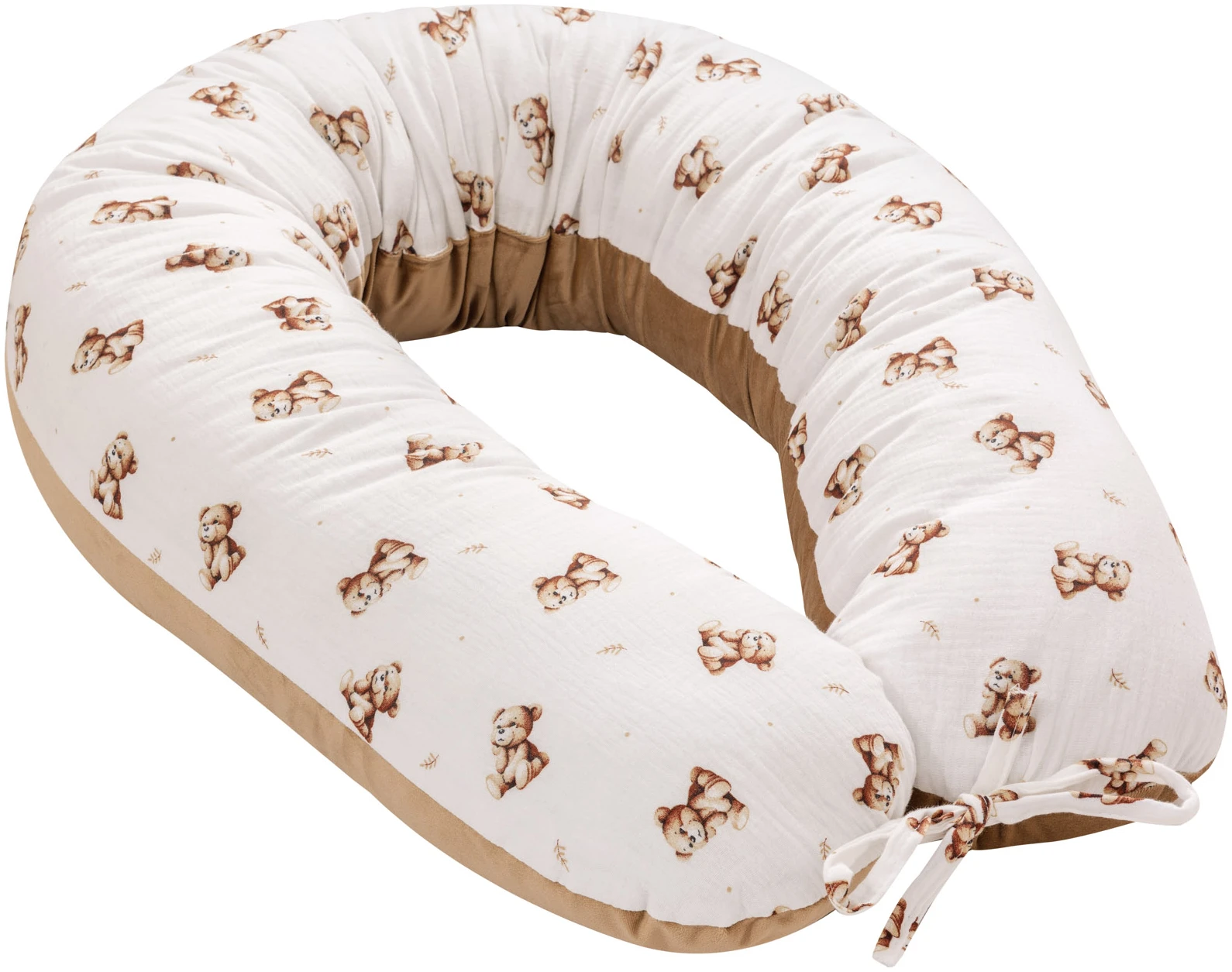 JUKKI V Type Πολυλειτουργικό Μαξιλάρι Θηλασμού και Εγκυμοσύνης 170cm Baby Bear Μουσλίνα & Toffee Soft Βελούδο