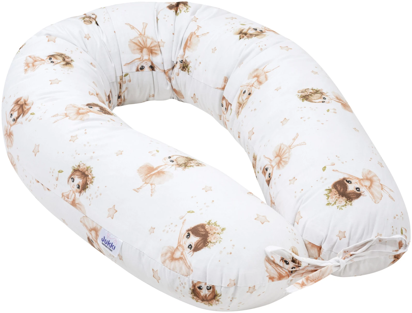 Πολυλειτουργικό μαξιλάρι εγκυμοσύνης & θηλασμού JUKKI τύπου «V» (170 cm) σε σχέδιο Prima Ballerina, με αντιαλλεργικό γέμισμα ECO FILLBALL. Ιδανικό για στήριξη στον ύπνο της εγκύου, άνετο θηλασμό/μπιμπερό και υποστήριξη του μωρού όταν μαθαίνει να κάθεται.