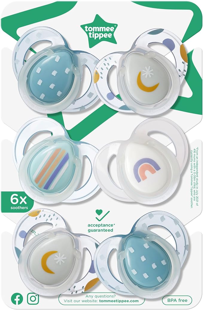 Tommee Tippee Nighttime Πιπίλες 6–18m (6τμχ) – Glow in the Dark, Ορθοδοντικές, BPA Free