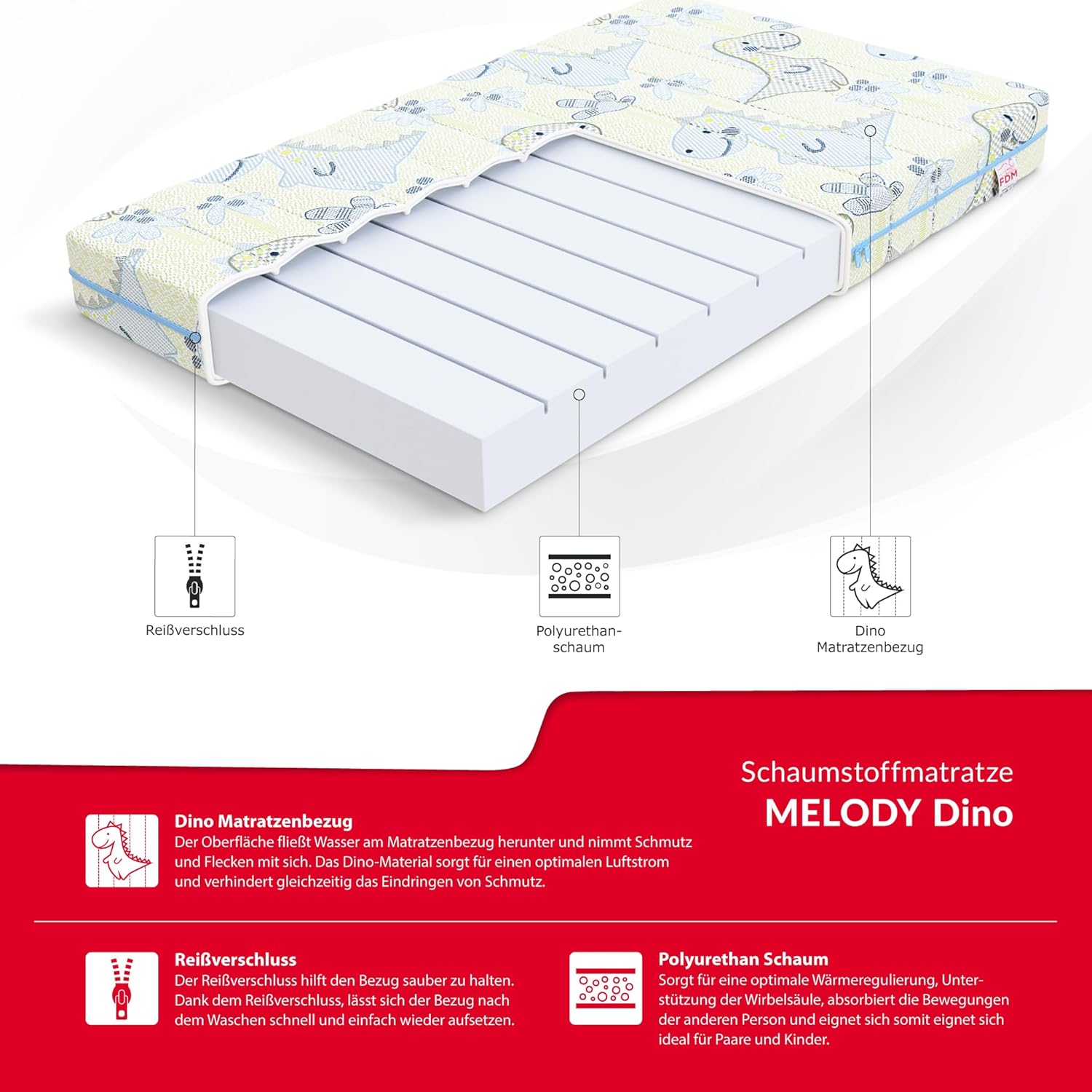 FDM Somnia Cold Foam Παιδικό Στρώμα 60×120x10 cm Oeko-Tex Σκληρότητα H3 με Πλενόμενο Κάλυμμα Dino