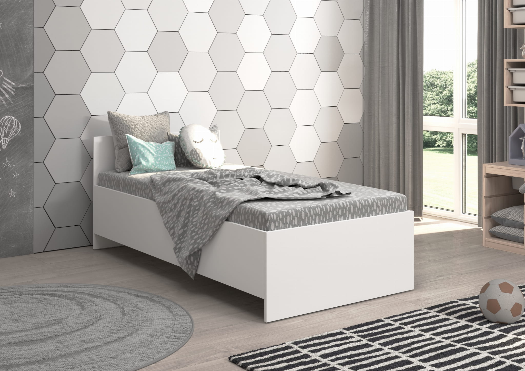 Το παιδικό κρεβάτι JUNIOR έχει σχεδιαστεί για να προσφέρει ασφάλεια και άνεση στο παιδί. Το απλό προστατευτικό πλαϊνό εξασφαλίζει σταθερότητα και προστασία κατά τη διάρκεια του ύπνου.