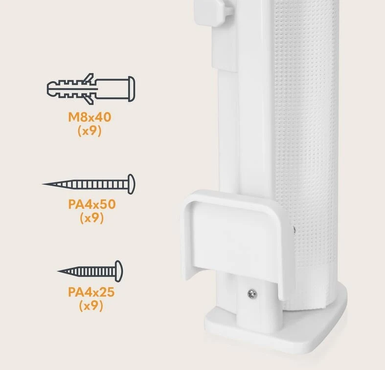 • Στερέωση σε τοίχο, κάσα πόρτας ή άλλα σημεία με τις παρεχόμενες βίδες