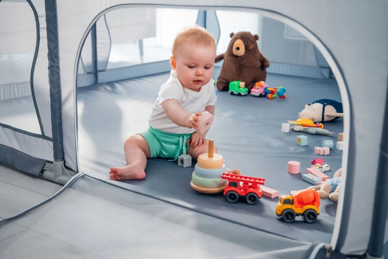 • Διασφαλίζει συνεχή οπτική επαφή γονέα–παιδιού μέσω των διάφανων πλευρών.