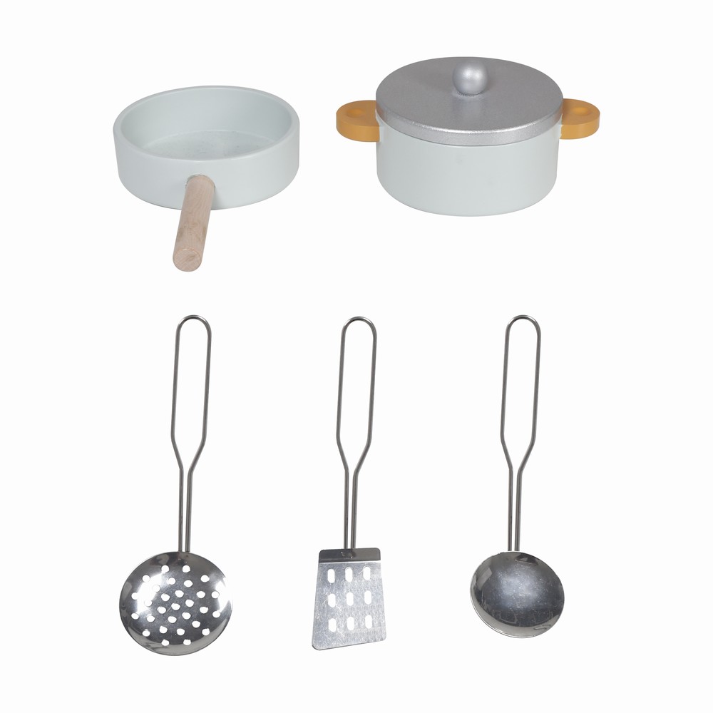 Περιλαμβάνει 6 ξύλινα αξεσουάρ: κατσαρόλα, τηγάνι με καπάκι, κουζινικά εργαλεία