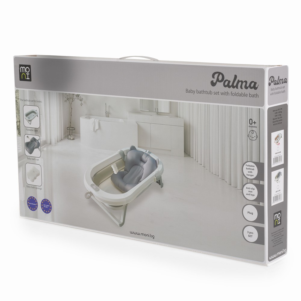 Μετατρέψτε το μπάνιο σε μια ασφαλή, άνετη και πρακτική εμπειρία από την πρώτη στιγμή με το Σετ Μπάνιου Moni Palma 3 Τεμαχίων. Κατάλληλο για νεογέννητα από 0+ μηνών, περιλαμβάνει πτυσσόμενη μπανιέρα, μαλακό μαξιλάρι και σφουγγάρι φιλικό προς το ευαίσθητο δέρμα του μωρού. Η μπανιέρα εξοικονομεί χώρο, διαθέτει αντιολισθητικά πόδια, βαλβίδα/πώμα για αποστράγγιση και δυνατότητα ανάρτησης στον τοίχο. Όλα τα υλικά είναι υψηλής ποιότητας, ασφαλή για βρέφη και χωρίς επιβλαβείς ουσίες.