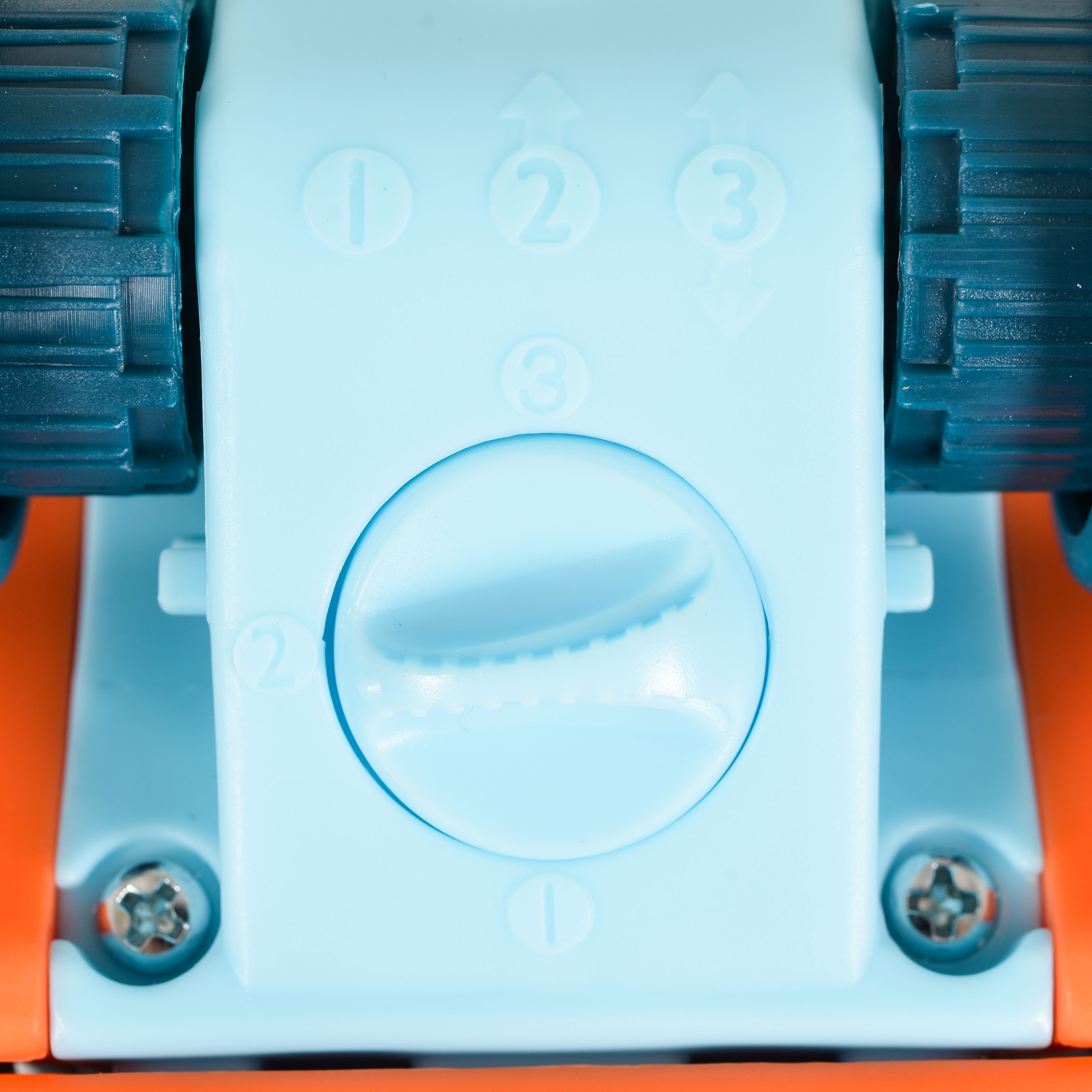 - Επίπεδο 3 – Ελεύθερη κύλιση: οι τροχοί ξεκλειδώνουν πλήρως για προχωρημένη εξάσκηση και διπλή κατεύθυνση.
