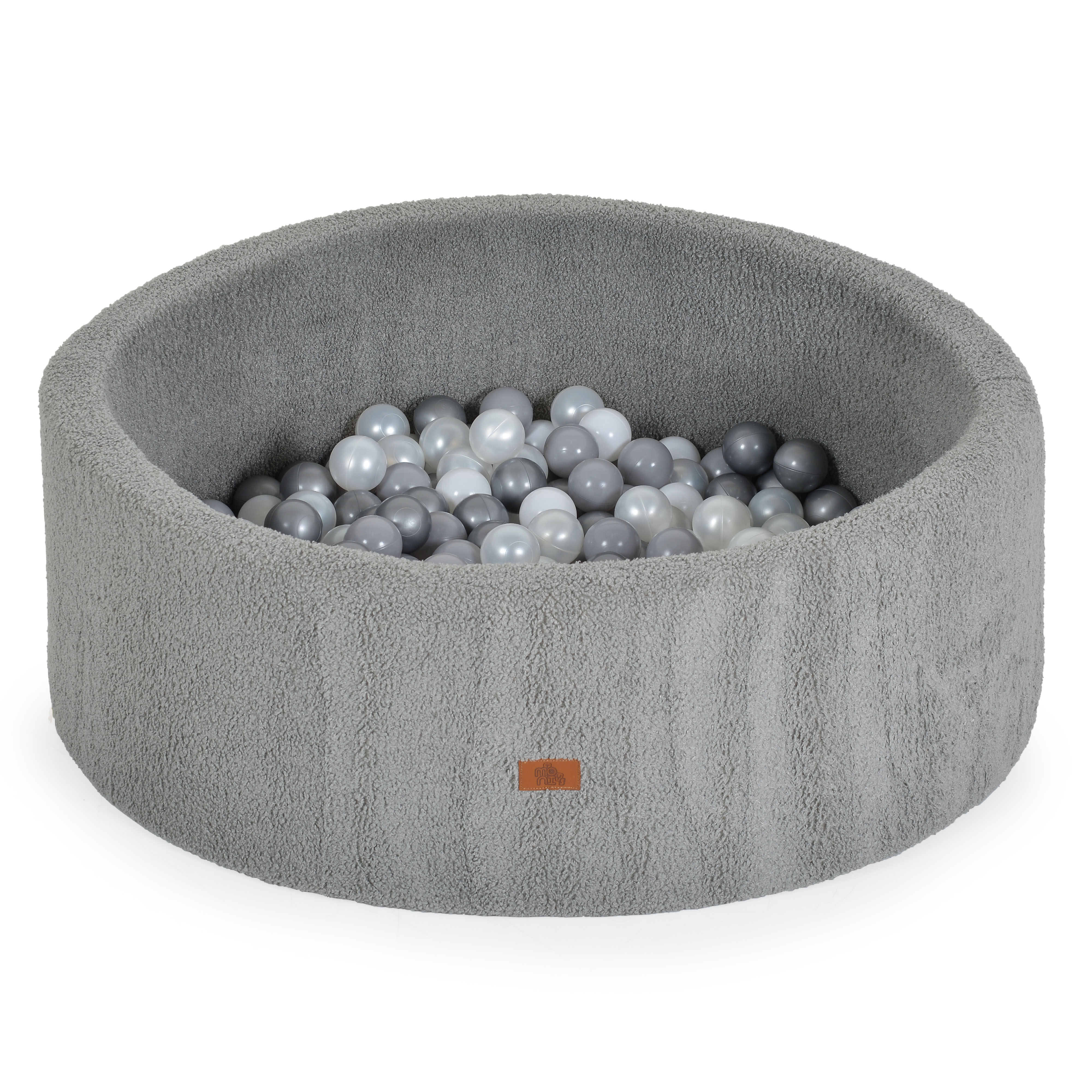 - 200 μπάλες παιχνιδιού: Σε απαλούς γκρι και λευκούς τόνους, διάμετρος 5,5 cm.