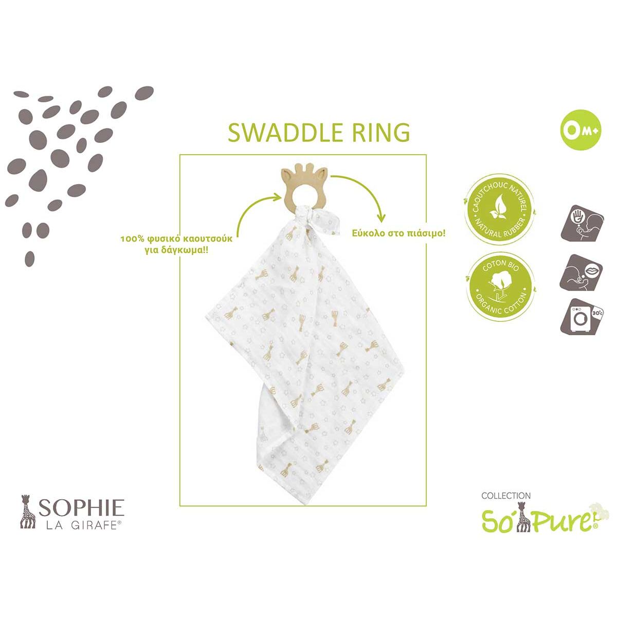 Sophie la girafe Πανάκι παρηγοριάς 0+ μ με δαχτύλιο οδοντοφυίας 100% φυσικό καουτσούκ S220131