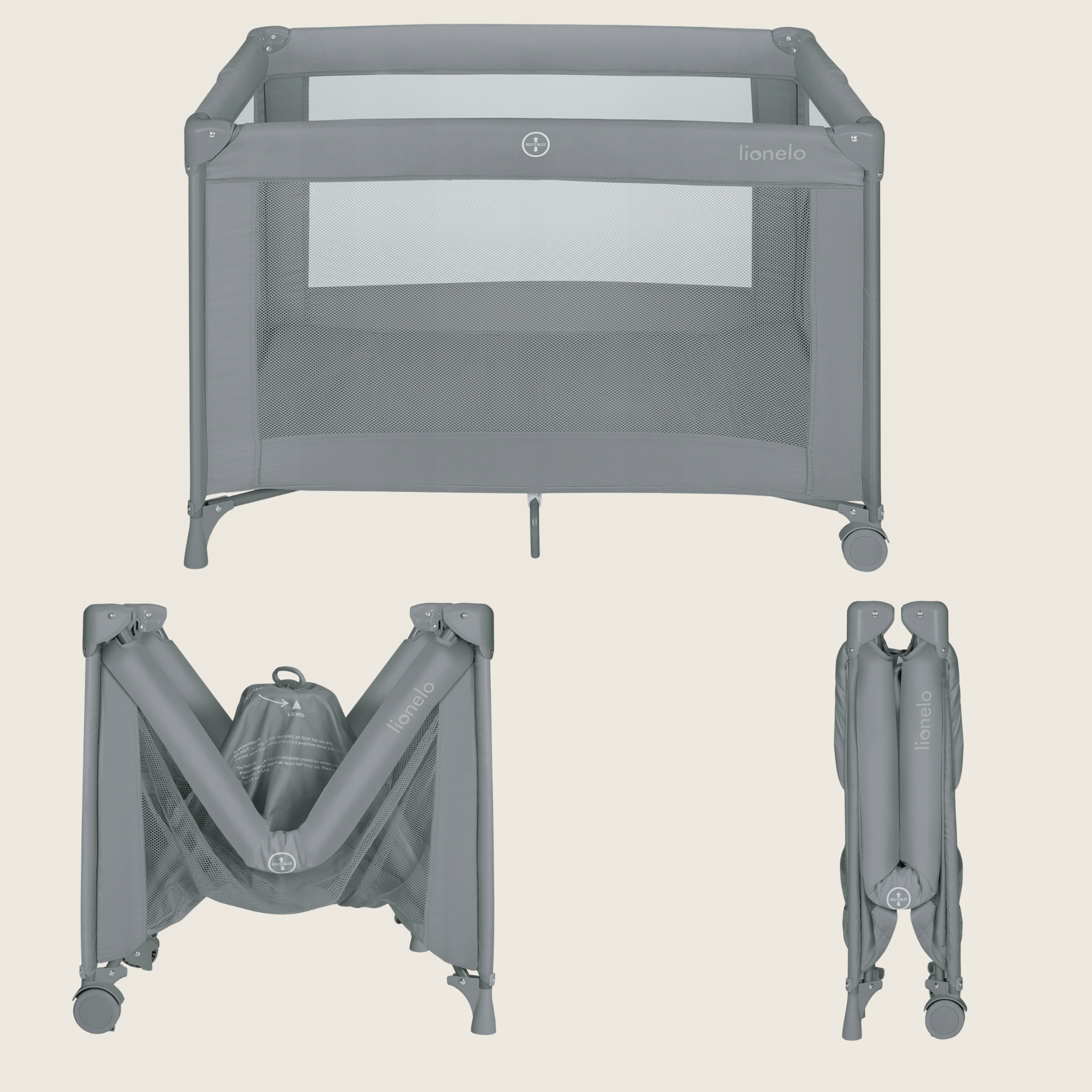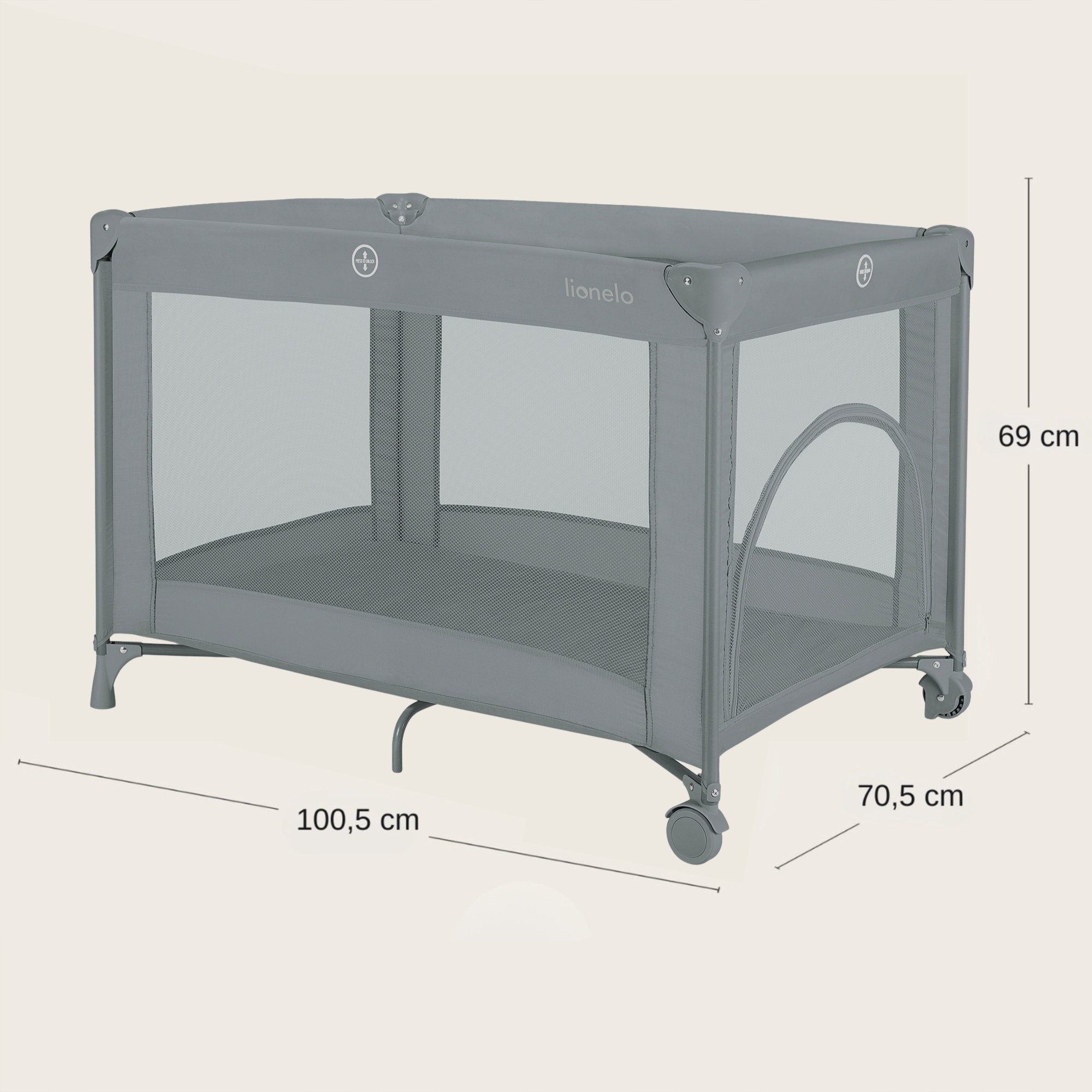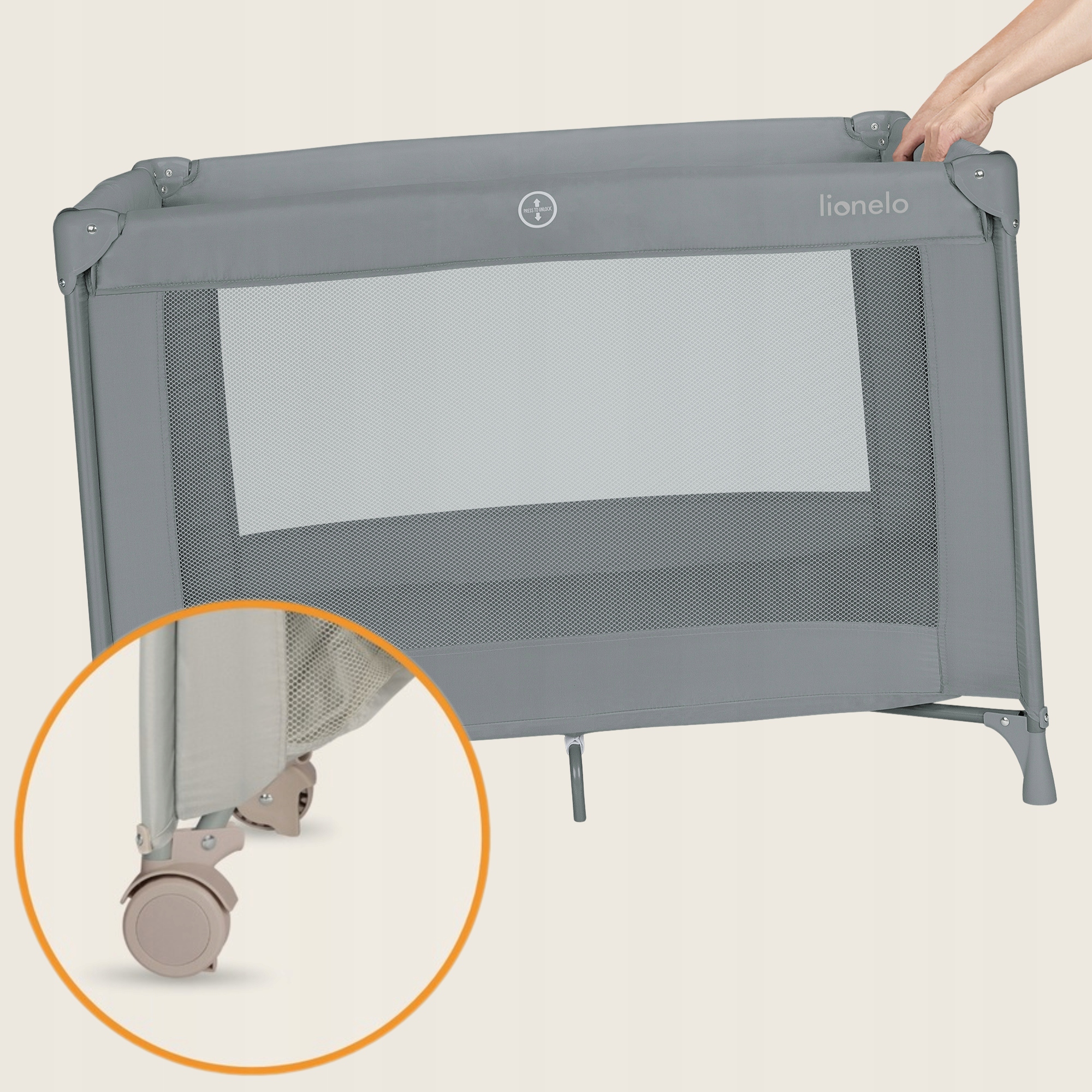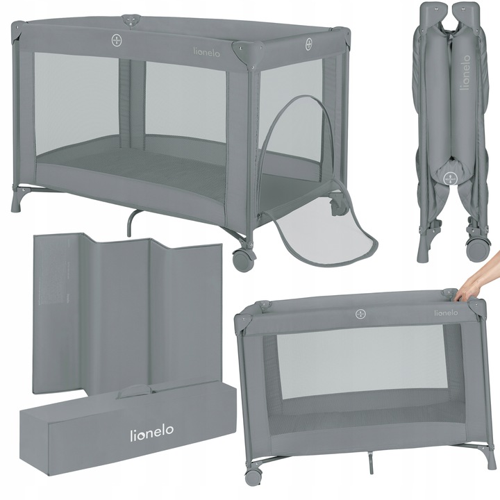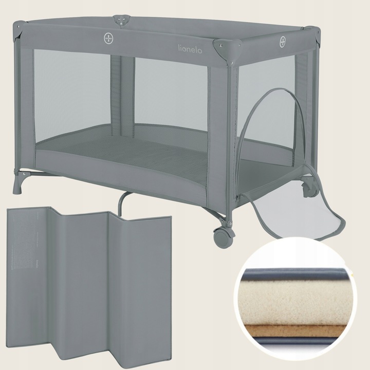 Lionelo Amelie Παρκοκρέβατο 1 Επιπέδου - Γκρι Concrete - παρκοκρέβατο για ασφαλή ξεκούραση και παιχνίδι στην καθημερινότητα ή το ταξίδι. Πρακτικός σχεδιασμός για καθημερινή χρήση.