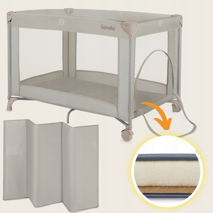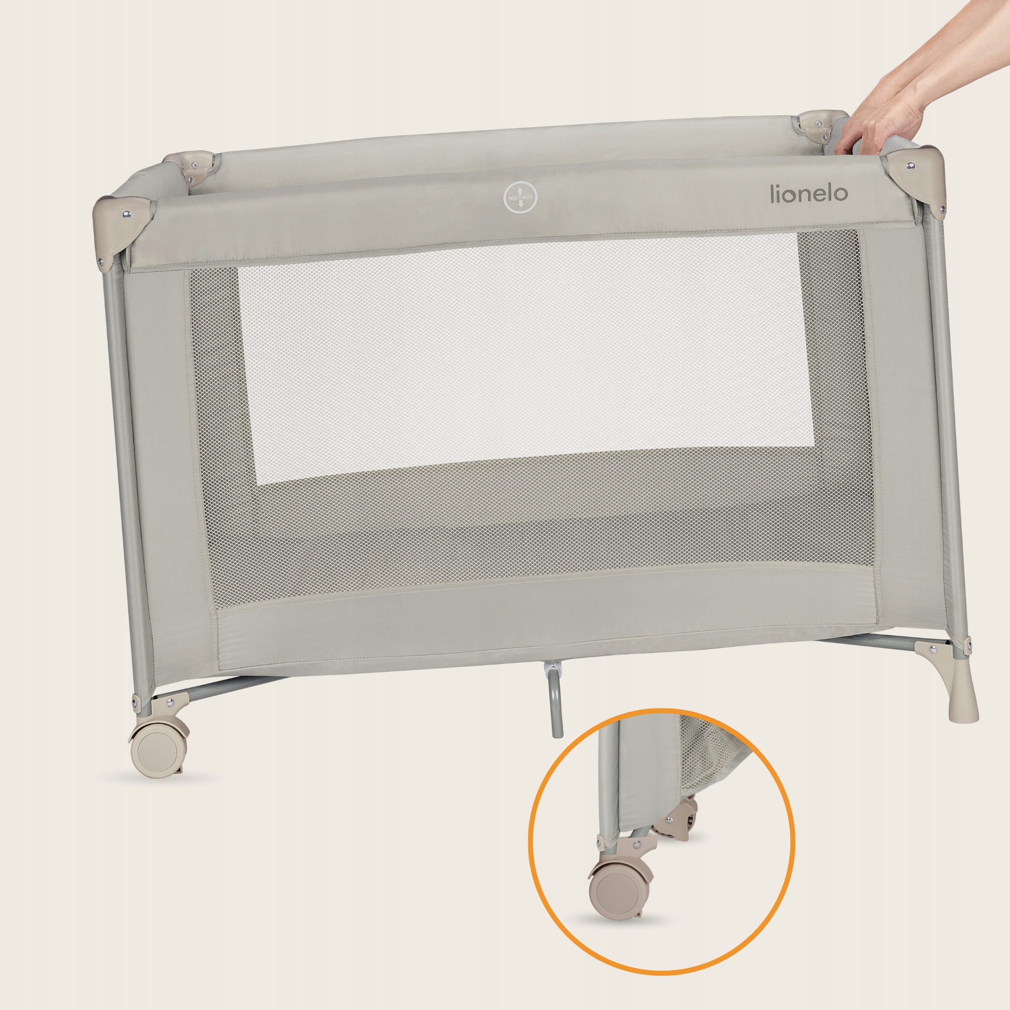 Lionelo Amelie Παρκοκρέβατο 1 Επιπέδου - Μπεζ Sand - παρκοκρέβατο για ασφαλή ξεκούραση και παιχνίδι στην καθημερινότητα ή το ταξίδι. Πρακτικός σχεδιασμός για καθημερινή χρήση.