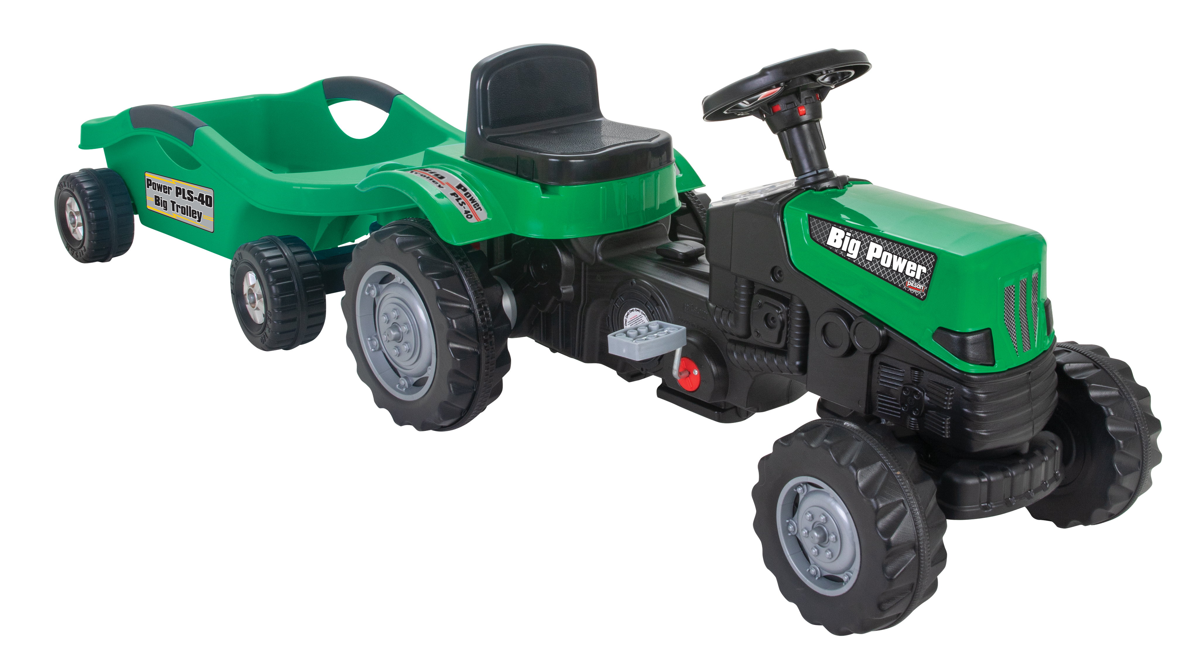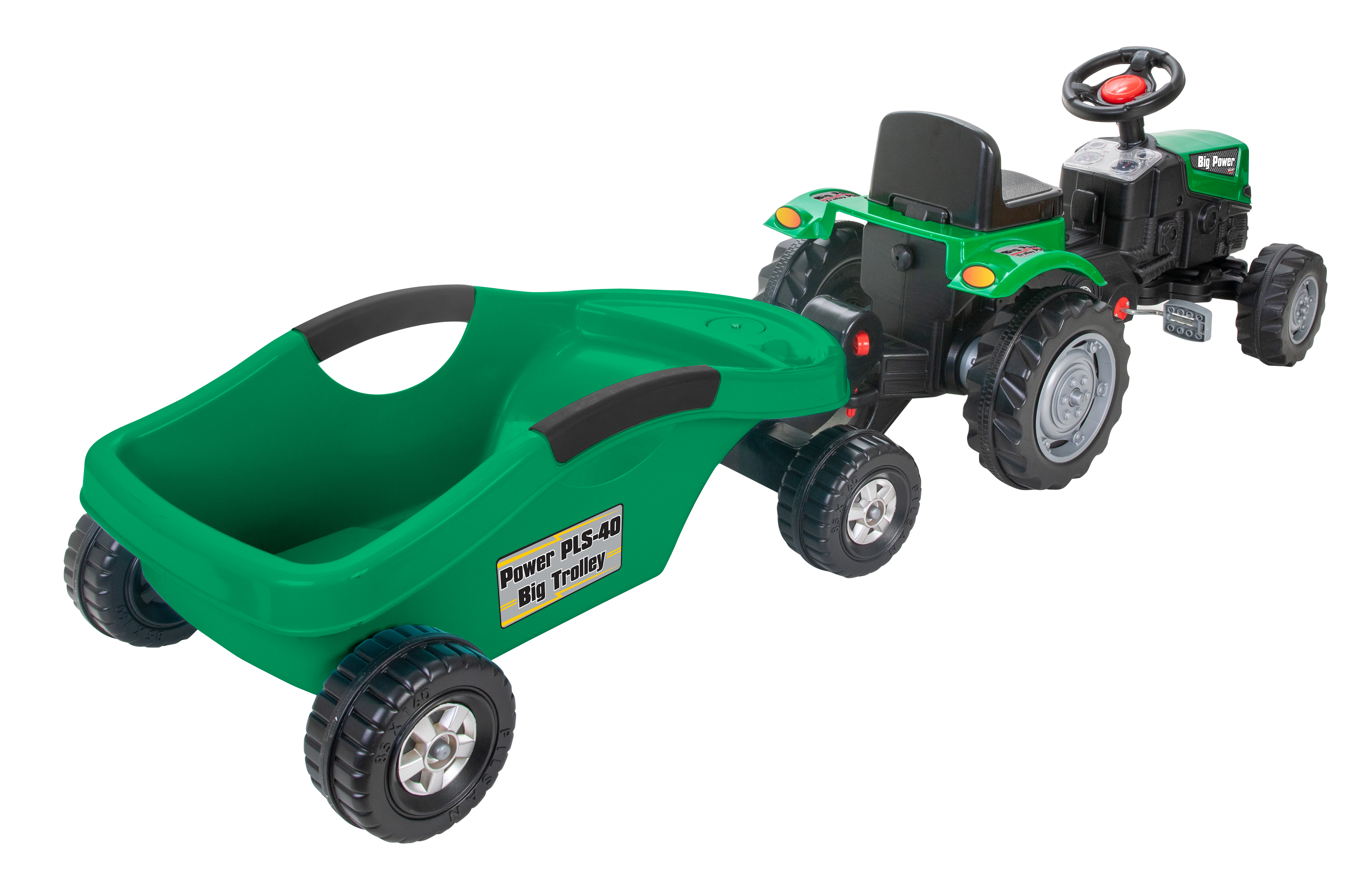 • The tractor is pedal-powered with a stable belt drive system, featuring a patented easy-steering mechanism and a fun horn to bring even more smiles during playtime.