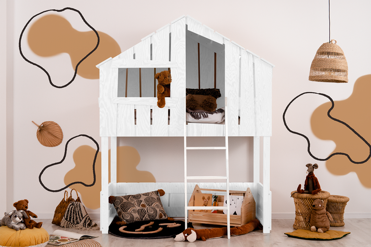 The Ted A by Adeko is an innovative and charming bunk bed in the form of a cottage, made of solid pine wood. It perfectly fits every child’s dream of having their own cozy space. The area beneath the bed offers additional room for play or storage, maximizing space efficiency.
