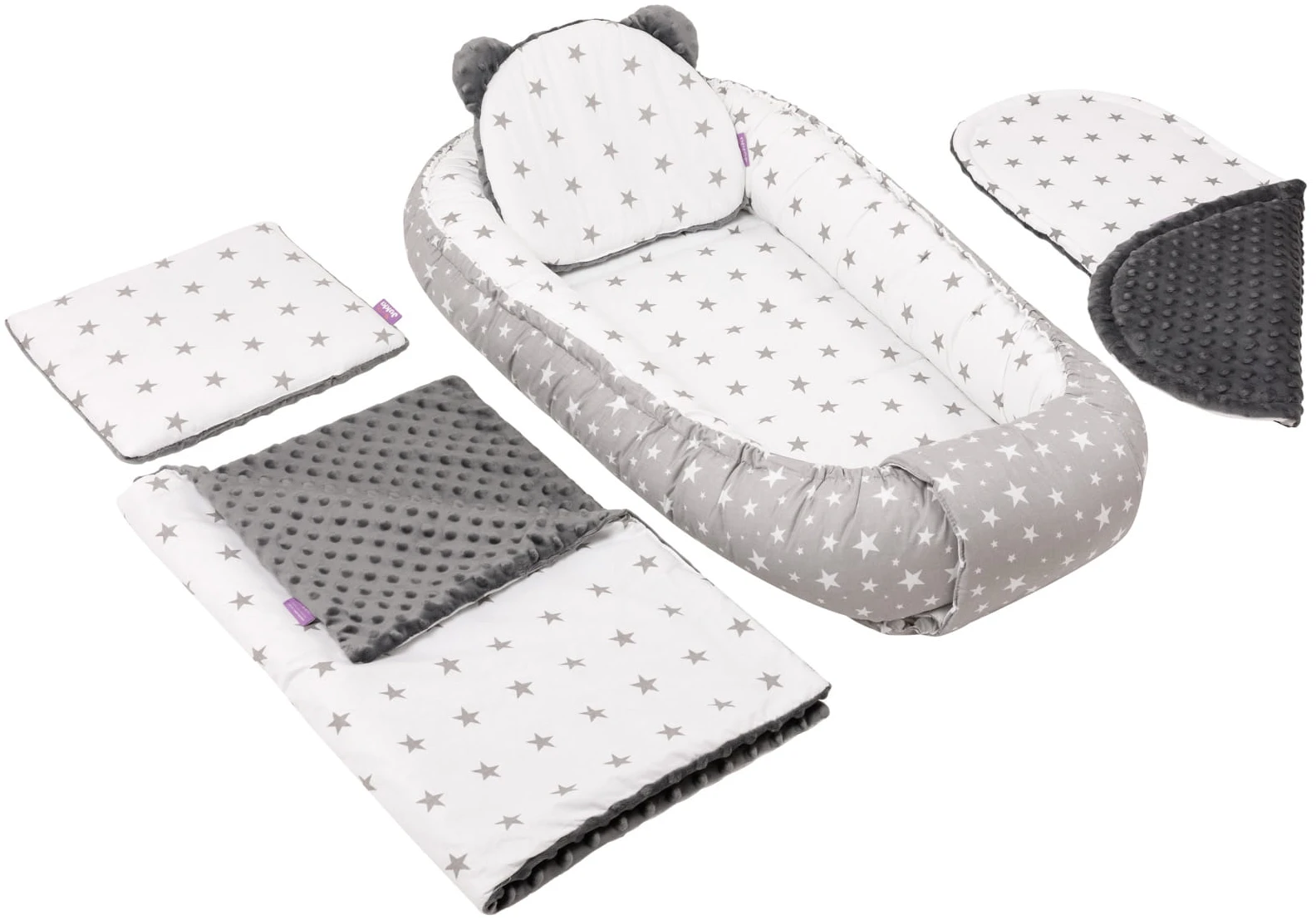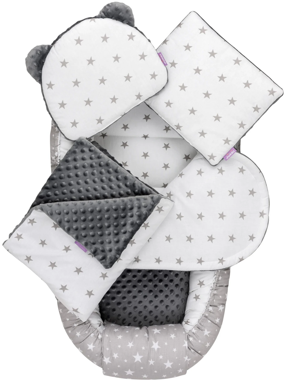Jukki Baby Baby Nest 100x55 Set of 5 Fabric Grey Stars & Grey Minky 5904506818723