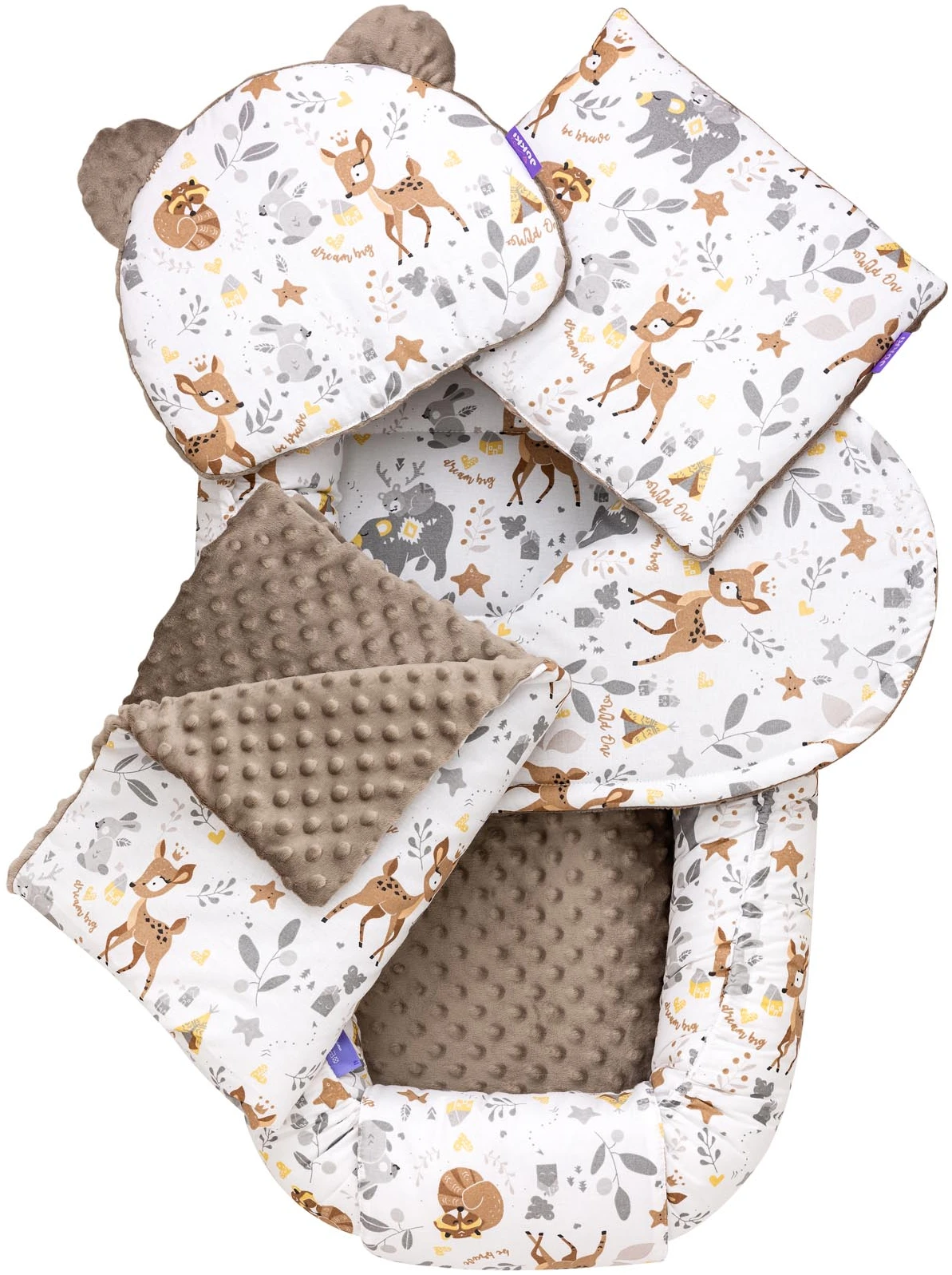 We have created a baby dowry set consisting of 5 products perfect for babies from 1 day of life up to about 9-10 months. The baby nest and the other products in the set will provide your baby with comfortable rest and good sleep. All parts of the Jukki set offer practical use when caring for and caring for the baby, both at home and on a family trip.