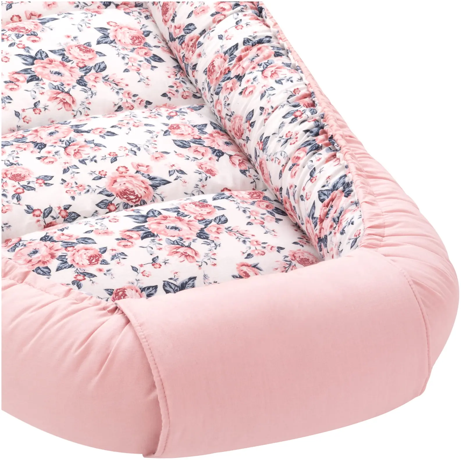 in the parents' bed – the nest provides a safe space for the baby, prevents it from rolling, bumping or getting under the duvet (especially recommended for mums who sleep with their baby),