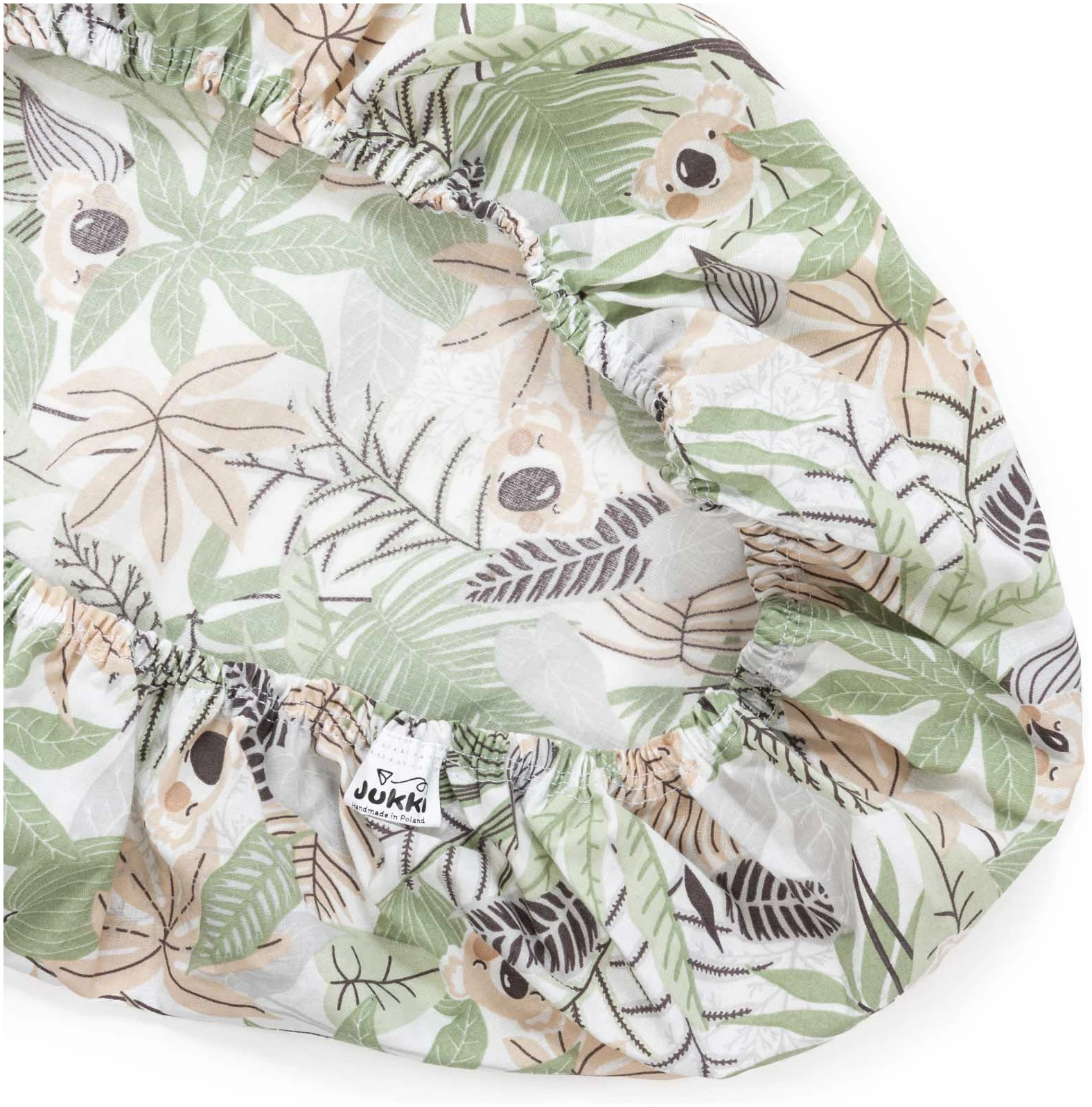 The JUKKI cotton sheet, thanks to the strong elastic sewn into tunnels, fits perfectly on the mattress and does not move. This helps your baby sleep soundly.