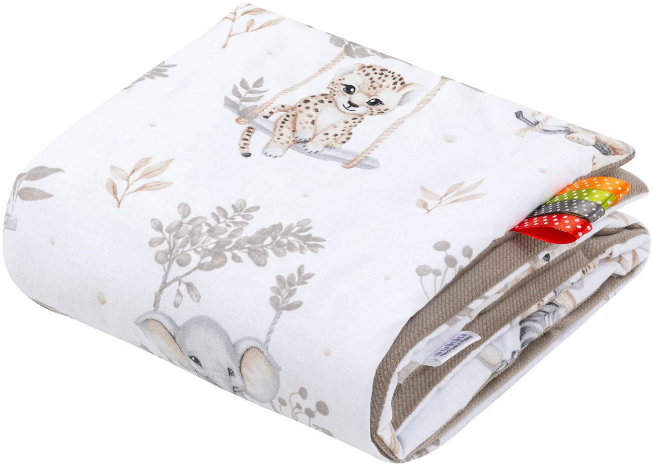 Children love hugs and when someone picks them up, especially the little ones. The double-sided Jukki blanket will hug your baby from the first days of his life and make him feel comfortable and safe. The soft material will provide him with comfort. The baby will feel warmth and comfort. Made of high-quality materials, thermal blankets for babies are soft and pleasant to the touch, allowing a quiet and undisturbed sleep.
