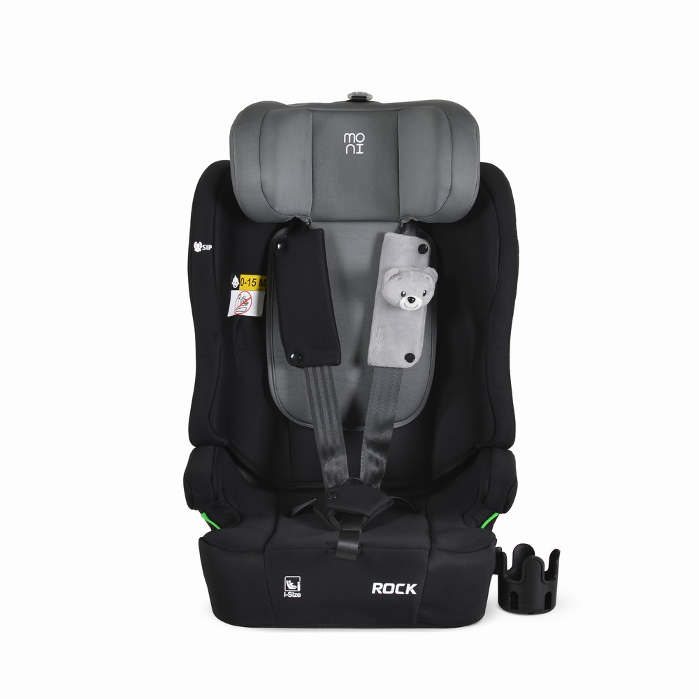 The Moni Rock 76–150 cm Space Grey is an R129/i-Size car seat with a 5-point harness (up to 105 cm), SIP side protection, adjustable headrest and cup holder. Comfort & safety from approx. 1 to 12 years.
