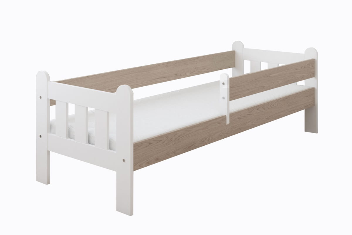 A beautiful, stylish bed made of varnished MDF (front and drawer front), and the remaining elements of laminated chipboard. A very practical, functional and safe bed for an independent toddler who has outgrown a bed for the youngest children. The frame is made of pine wood. The bed's load capacity is 70 kg, and as manufacturers we guarantee that the parent can lie down with the child (load capacity up to 100/110 kg).