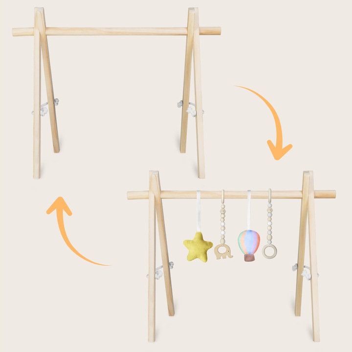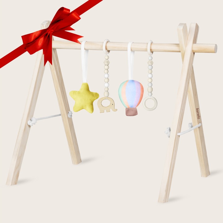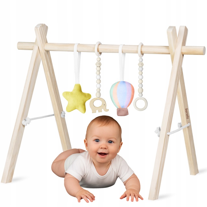 Lionelo Anis Wooden Gym - baby activity gym for sensory development, play and a safe environment for exploration. Practical design for everyday use.