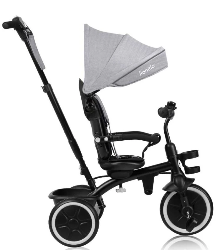 The Lionelo Berry Children’s Tricycle – Gray Stone belongs to the children’s tricycle category and is designed for comfortable outings and gradual confidence in movement. The Lionelo Berry is a 2-in-1 product that combines a pushchair with a standalone bike. It is designed for children aged 9 months to approximately 5 years or weighing up to 25 kg.