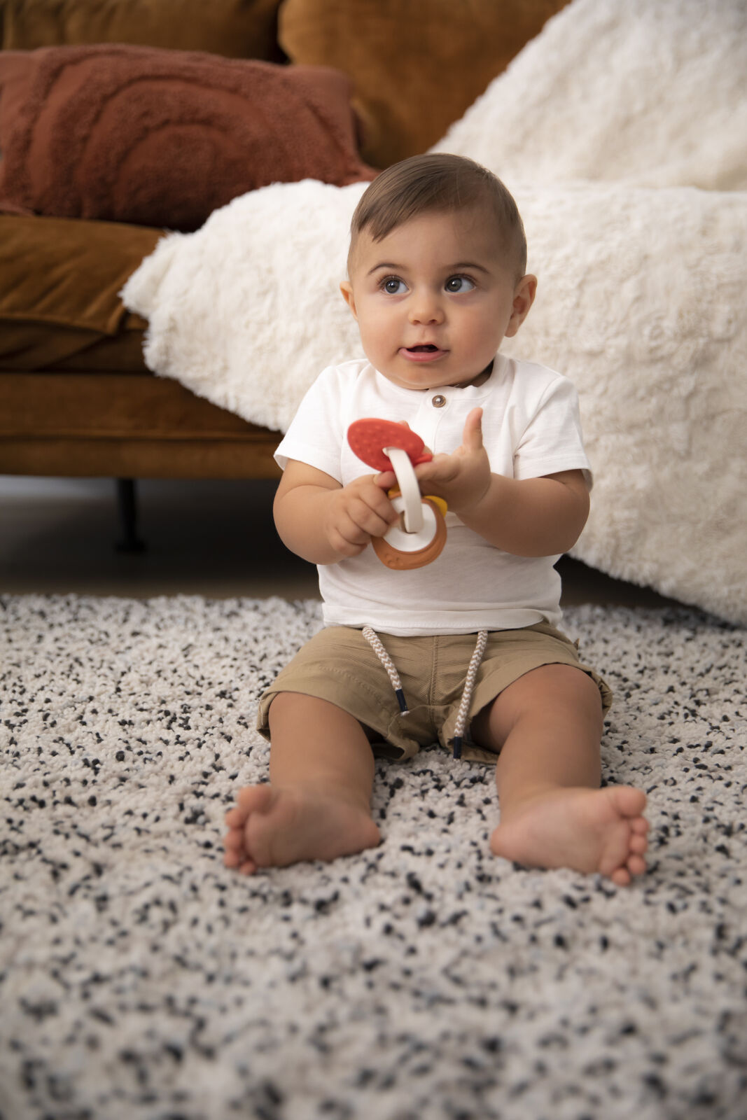 The Sophie la Girafe scented teething ring is designed for little hands and early teething needs from the very first months.