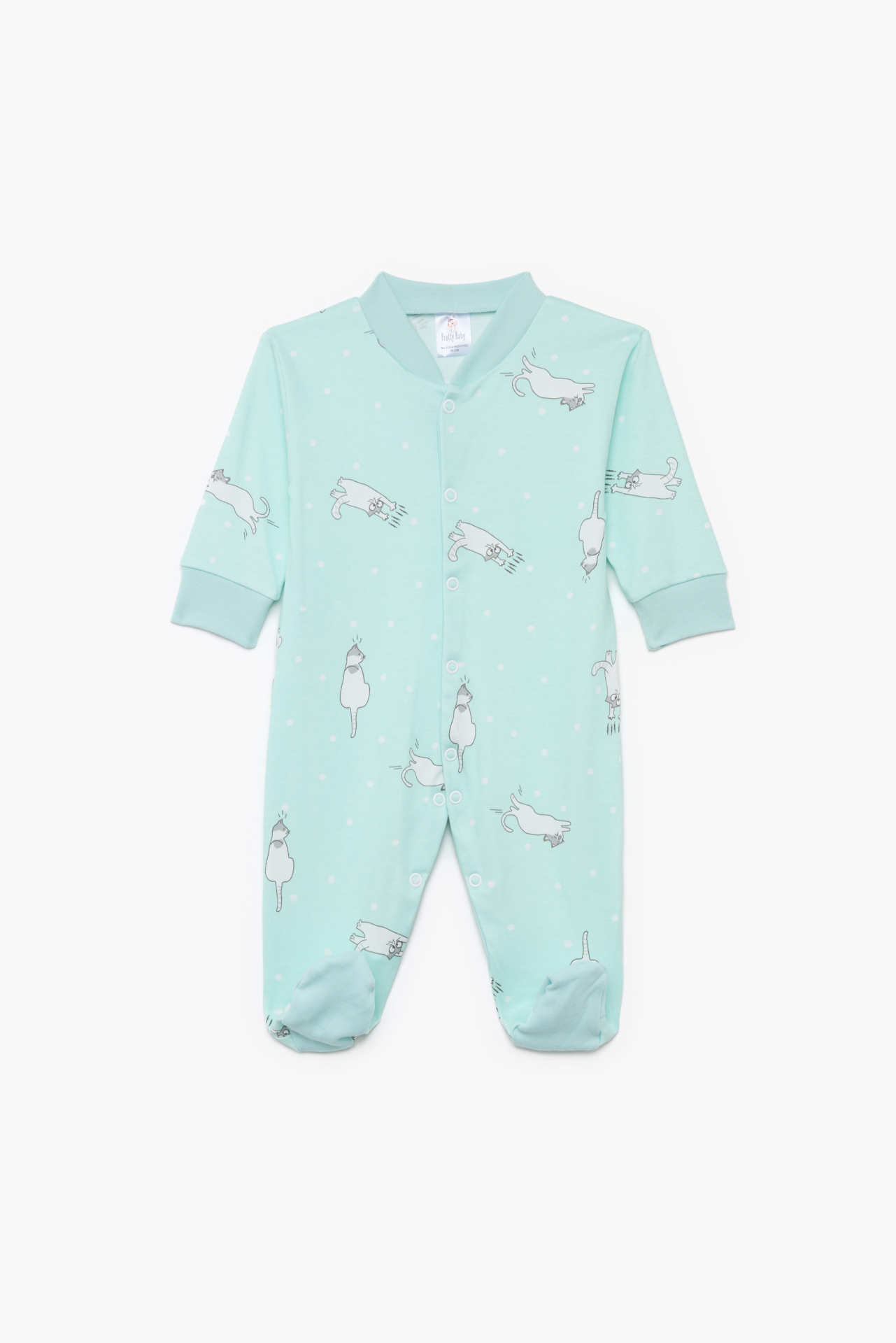 Pretty Baby Animals winter sleepsuit in mint (veraman) thick knit. Made from 100% high-quality cotton, with closed feet, safe print and snap buttons for easy diaper changes.