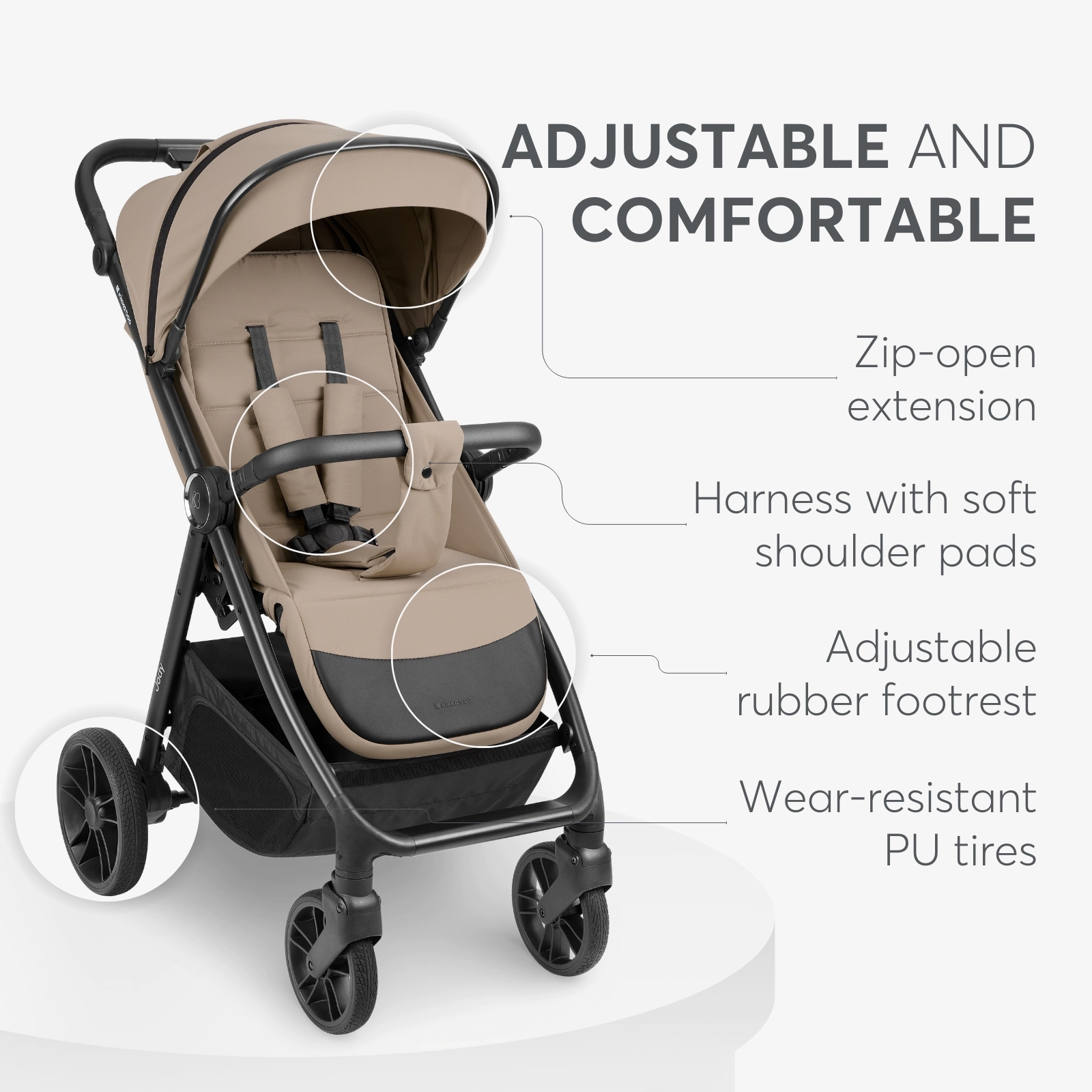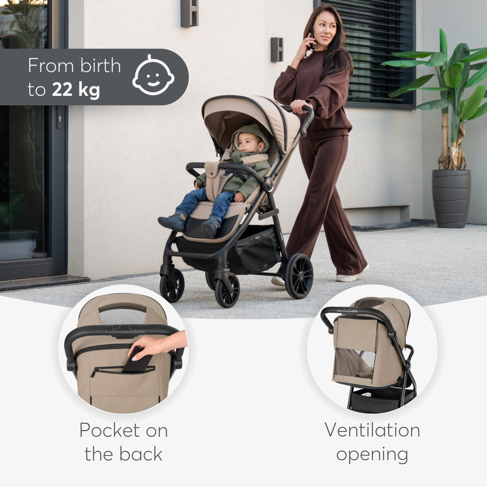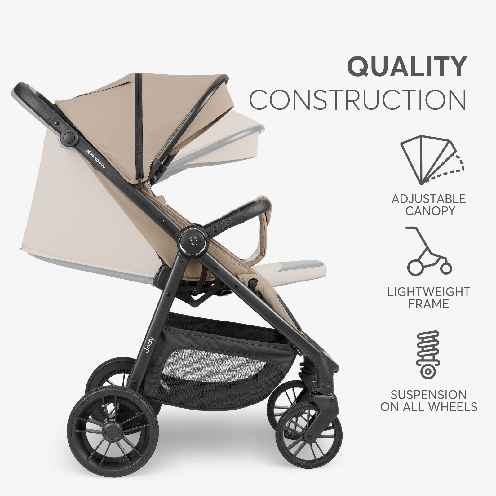 The Kikka Boo Jody pushchair in Beige is a lightweight and practical stroller, perfect for everyday walks and travel, offering comfort and easy handling.