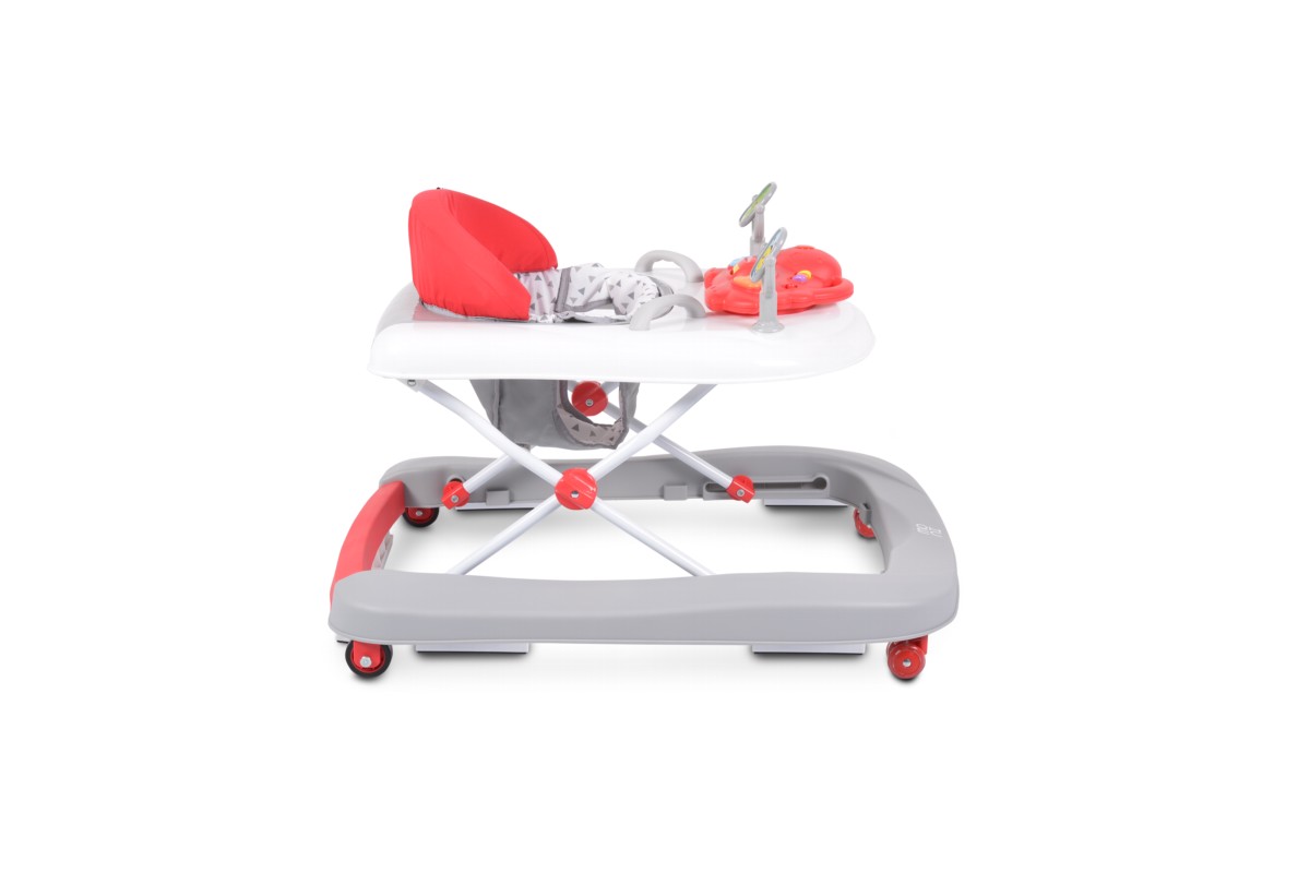 The Moni Walker Ramble 2in1 Red is a baby walker that converts into a push walker. Suitable from 6 months up to 12 kg, with 3 height levels, a musical tray, silicone wheels, and safety stoppers.