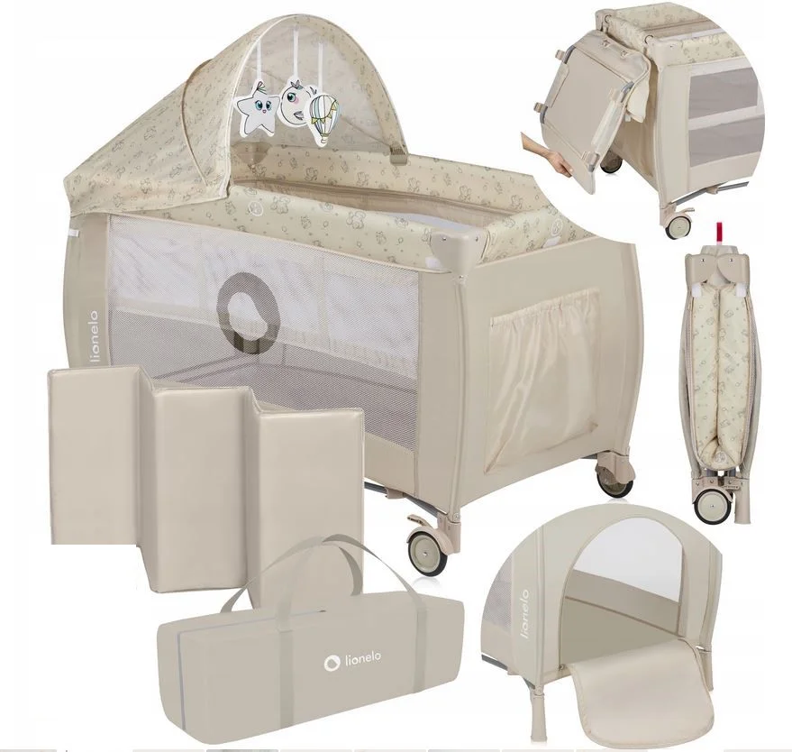 Lionelo Sven Plus 2 in 1 – Travel Cot with Accessories Beige Latte